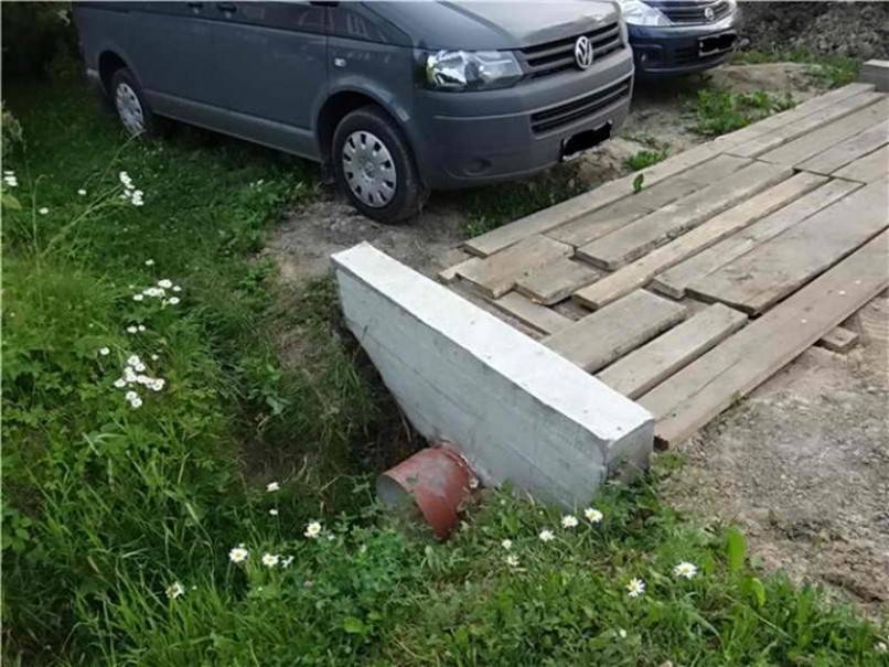- наличие широкой канавы. Такое препятствие потребует укладки железобетонной плиты с предварительным монтажом труб. Как вариант – деревянные шпалы;