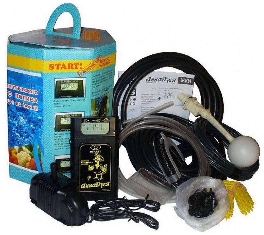 Автоматическая и полуавтоматическая система полива «АкваДуся» дает возможность регулировать режим полива в соответствии с временем суток и днями недели. Управление режимом микрополива производится с помощью таймера, вода подается из источника под давлением – садового крана или емкости для хранения воды. Автоматическая система работает от батареек, срок службы которых рассчитан на 6 месяцев. Блок управления оснащен элементом, способным определять время суток и временные промежутки между поливами, программируется в зависимости от потребностей в поливе.