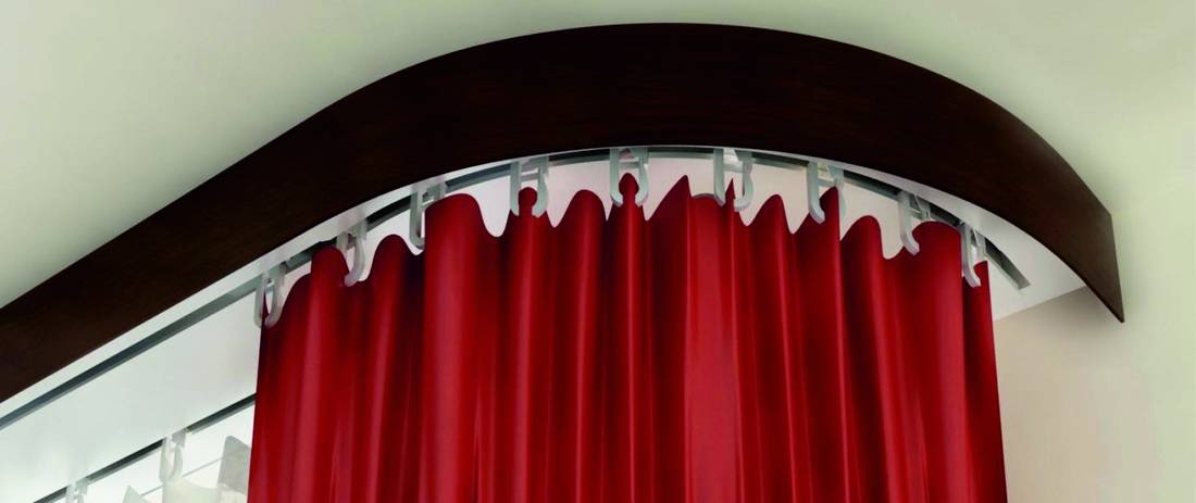 Карнизные держатели бывают разной формы, отчего обрамить нестандартный проем окажется легко. Например, арки, эркеры и прочие архитектурные изыски. Благодаря объему, карнизная планка для штор увеличит пространство, если выбирать потолочный вариант и уменьшит его – в противном случае. Такими вариантами держателей для штор легко маневрируют визуальным видением помещения.