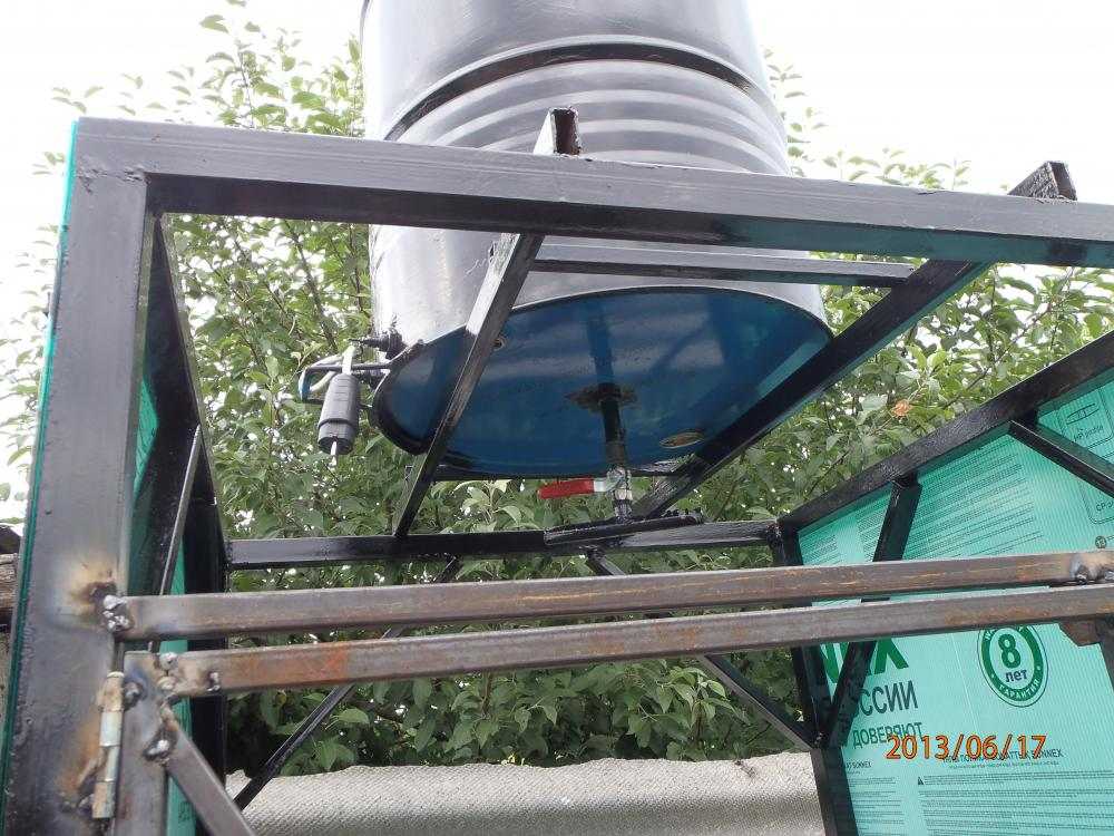Прежде всего, необходимо решить, как и где можно закрепить емкость. Специалисты советуют сварить специальный металлический каркас, который надежно удержит бак, даже если он наполнен 200 литрами воды. Правда, такое решение будет и самым сложным.