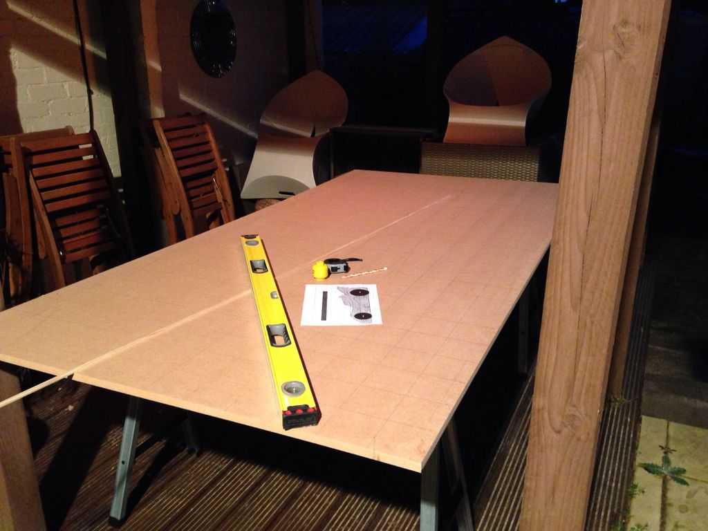 Размечаем на полотне простым карандашом ось и точки крепления багета.