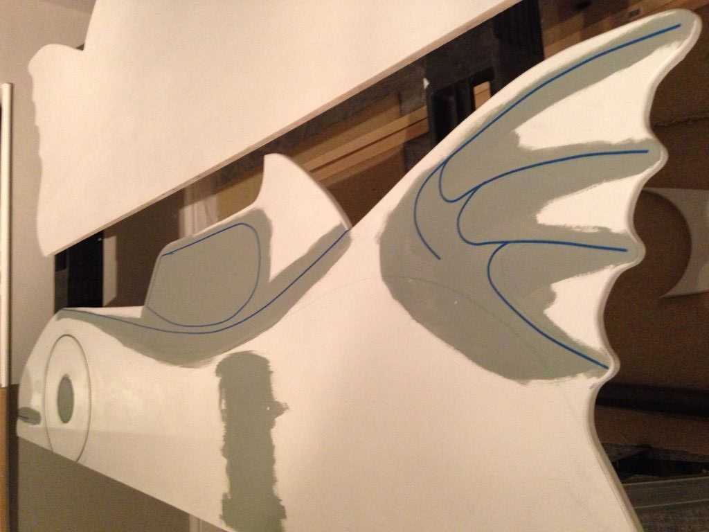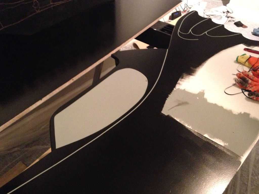 Сверяясь с имеющимся листком, переносите все линии с бумаги на фанеру. Сначала линии тонкие, после того как все более-менее прорисуете, можно очертить результирующие контуры жирной линией — вырезать будет проще. Хоть детали нужны в двойном экземпляре прорисовывать вторую нет смысла: вырезав первую, ее обведем и получим вторую.