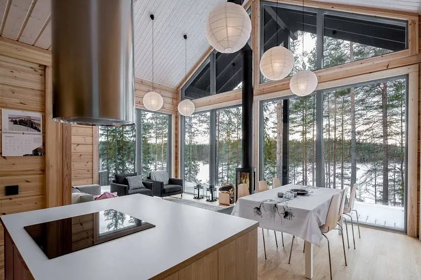 Кухня-столовая в современном доме фахверкИсточник design-homes.ru