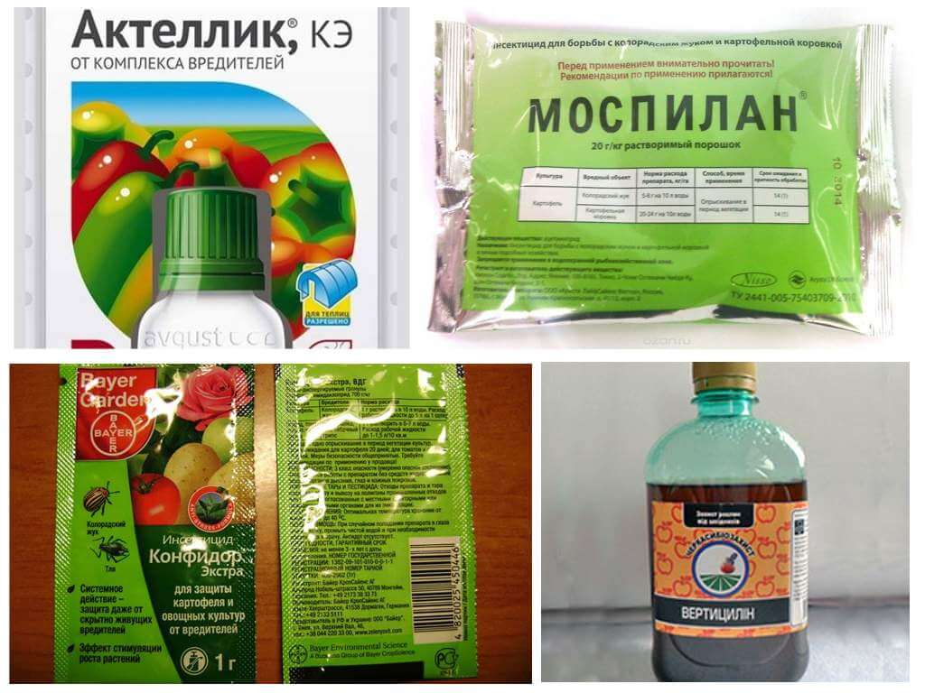 | Актара | Защищает растение на целый месяц, при внесении в грунт срок продлевается в 2 раза. | Опрыскивается в расчёте 2л. на 100 м2 площади. Многократный полив – |