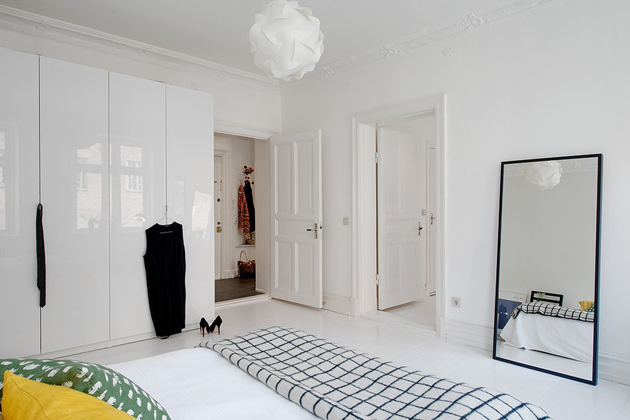 - Увеличение размеров площади. Для маленьких пространств двери белого цвета становятся настоящим спасением: им под силу визуально «растянуть» стены, приподнять потолки, расширив миниатюрное помещение. Усилить подобный эффект поможет оформление комнаты зеркалами.