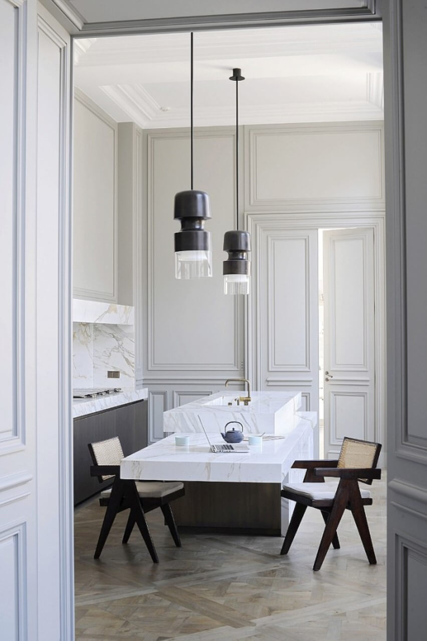 И если черный цвет в интерьере используют осторожно, чтобы не переусердствовать, то белый цвет применяется широко и свободно, и в качестве окантовки – для плинтусов и наличников, и для перехода между контрастными решениями. Единственное ограничение – бежевый цвет стен, в таком случае придется подбирать теплый оттенок