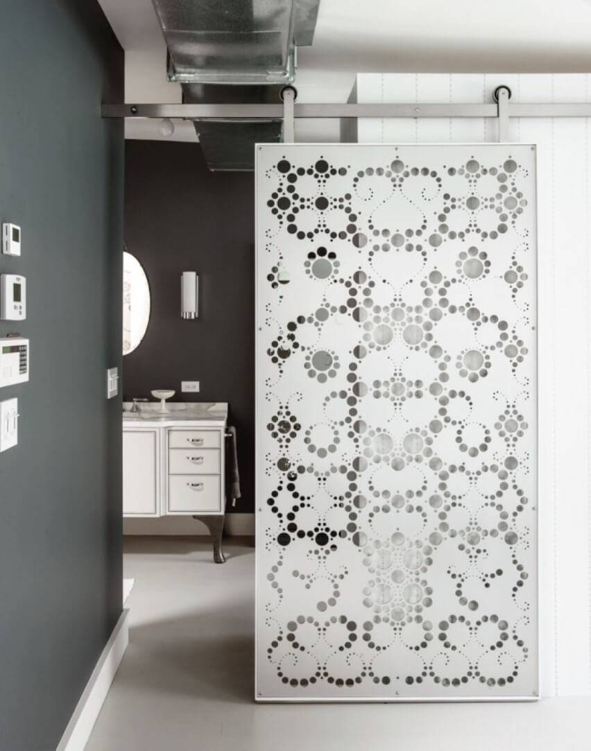 Данные конструкции, за счет своего типа открывания, прекрасно подходят даже для небольших пространств, амбарные конструкции, несомненно становятся ключевым декоративным акцентом, на котором держится весь интерьер.