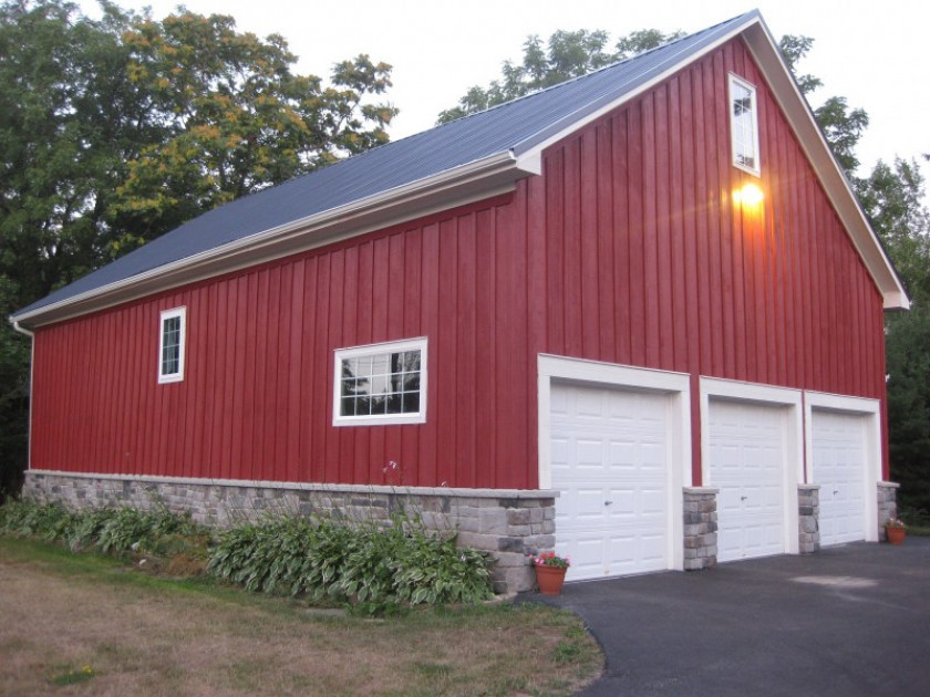Крыша для гаража с профнастила выглядит очень красиво, и срок использования — до 50 лет. Стройматериал обладает влагостойкостью и огнестойкостью, также с ним легко работать из-за стандартных размеров и можно применять вторично.