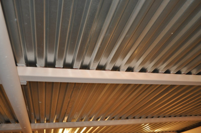 Дополнительный плюс методики – устойчивость к неблагоприятным погодным условиям и красивая отделка внутри гаража – готовый потолок из профилированного листа, устойчивый к действию открытого огня и к повышенной влажности.