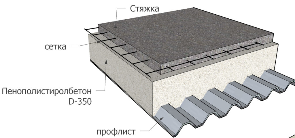 Снизить вес перекрытия можно за счет бетонирования кровли по листам профнастила.