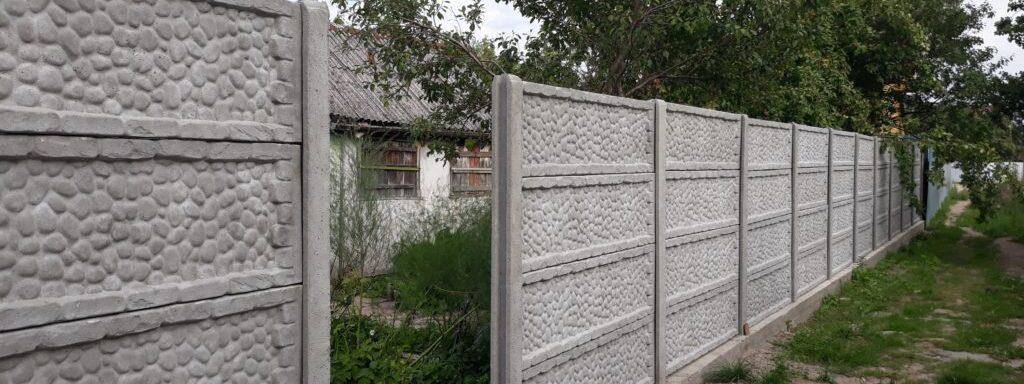 Бетон армированный стальными прутками – основное сырьё для строительства сплошных ограждений. Различные способы производства заборных плит или отдельных сегментов позволяют сделать непреодолимую преграду для злоумышленников либо органично выполнить зонирование территории. Вариативность форм, видов, размеров позволяет совместить ограду с существующим стилем оформления дома, хозяйственных построек, участка.