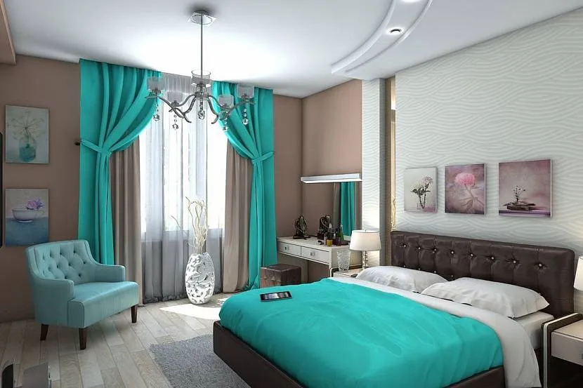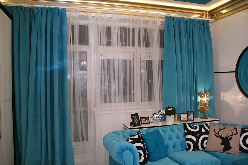 Особенности бирюзовых штор: какой эффект дают в интерьере