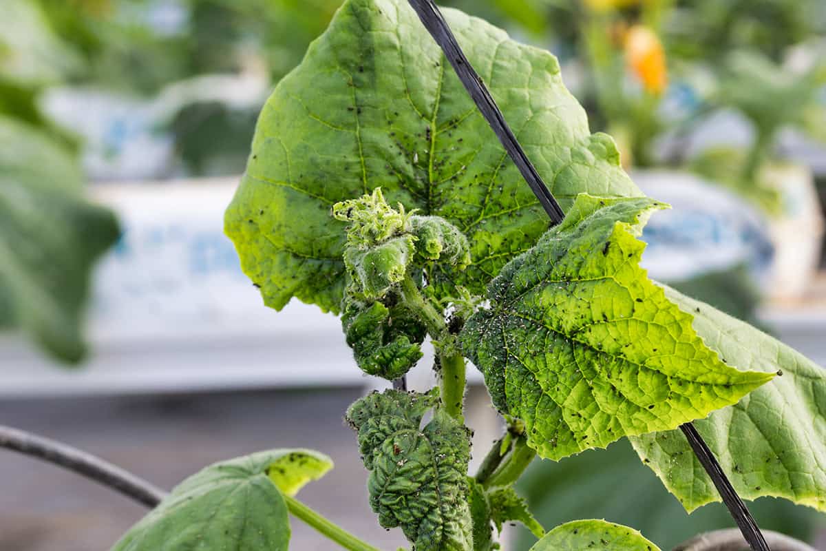 Пик активности вредителей — середина лета. На огуречных листьях можно увидеть полчища насекомых чёрного или зелёного цвета. Из-за нашествия тли поражаются цветки и завязи, скручиваются и засыхают листья. Обезвоженное растение постепенно гибнет. При обнаружении этих насекомых необходимо сразу начинать с ними борьбу.