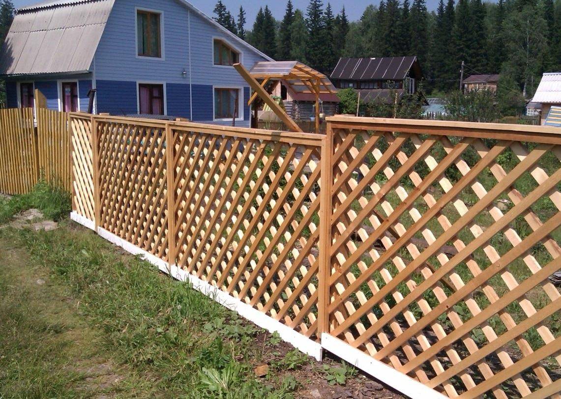Тонкие деревянные рейки подходят для создания оригинальных и недорогих заборов: плетенок и решеток. При плетении рейки перекрещиваются с опорными перекладинами, причем плетенка может быть как горизонтальной, так и вертикальной. Для создания решетчатой ограды перекрещенные рейки фиксируются на деревянной раме, а затем готовые модули навешиваются на опорные столбы из дерева, металла или бетона.
