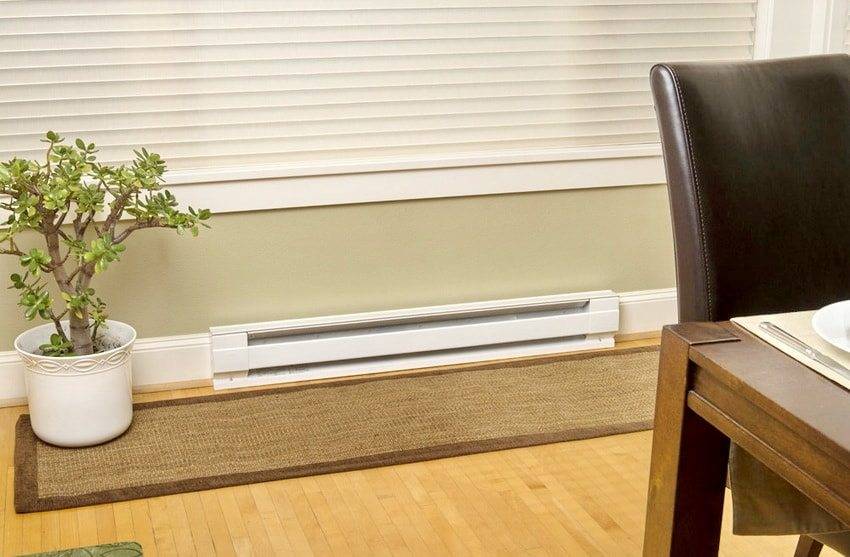 Электрические конвекторные обогреватели бывают напольными, настенными и плинтусными. Напольные и настенные конвекторы обычно до 45 см высотой, а вот плинтусные обычно не выше 25 см, но намного длиннее – длина такого конвектора может достигать 2,5 м.
