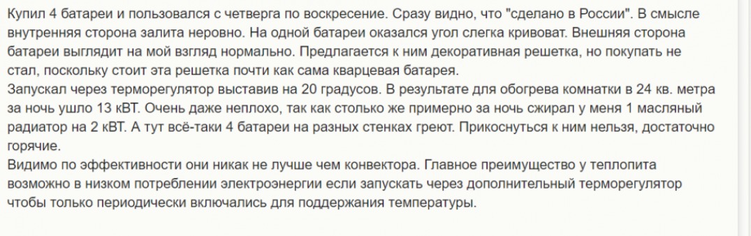 Также, можно отметить, что в среднем, кварцевые обогреватели дешевле конвекторов, но, это, конечно, зависит от конкретных моделей.