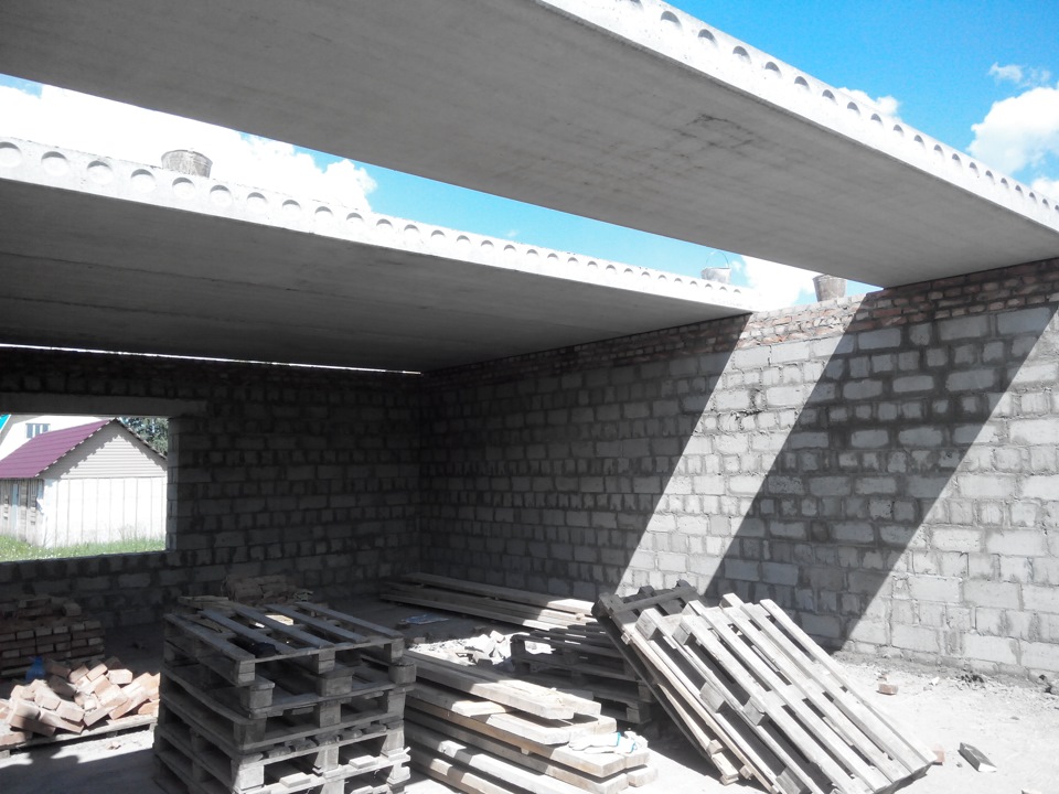 Плоская крыша гаража представляет собой две железобетонные плиты, лежащие на кирпичных стенах, покрываемые водоотталкивающим слоем.