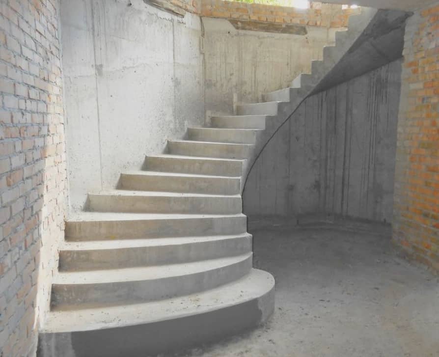 По форме лестницы могут быть прямолинейными (включать один или несколько пролетов, которые соединяются между собой под углом 90/180 градусов), которые считаются наиболее простыми и распространенными, сооружаются из готовых блоков, являются экономичными и прочными. Винтовые бетонные лестницы обычно устраивают внутри сооружения, по проекту, со сборкой опалубки, правильным расчетом нагрузок на проходную часть.