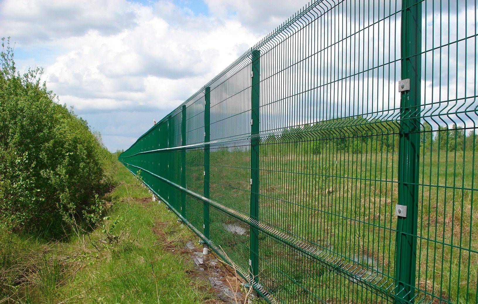 Эти ограждения устанавливают на каркасах и без них. Забор из сетки-рабицы обойдется недорого, но прочность низкая. Более надежна металлическая сетка, сваренная из проволоки диаметром до 3 мм в рулонах или секционная из тонких прутьев. Если требования по прочности стоят на первом месте выбирают 3D сетку.