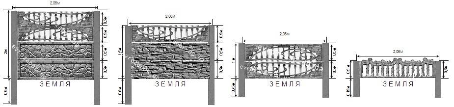 Наборные заборы имеют разнообразие вариантов декоративного исполнения