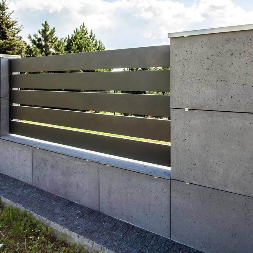 Изгородь из бетона проста в исполнении и часто используется на участках с современным дизайном