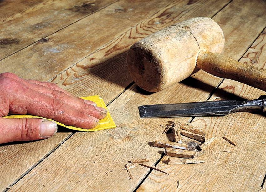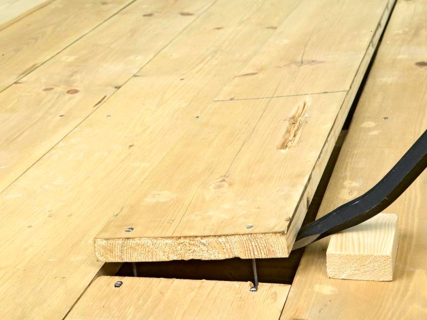 Если в напольном покрытии имеются прогнувшиеся половицы, их ремонт осуществляется посредством забивания гвоздей в новых местах