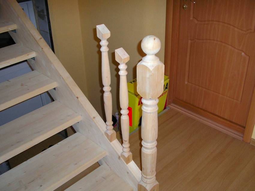 Готовые балясины вставляются в выбранные в ступенях гнёзда и крепятся шурупами к бокам каркаса.