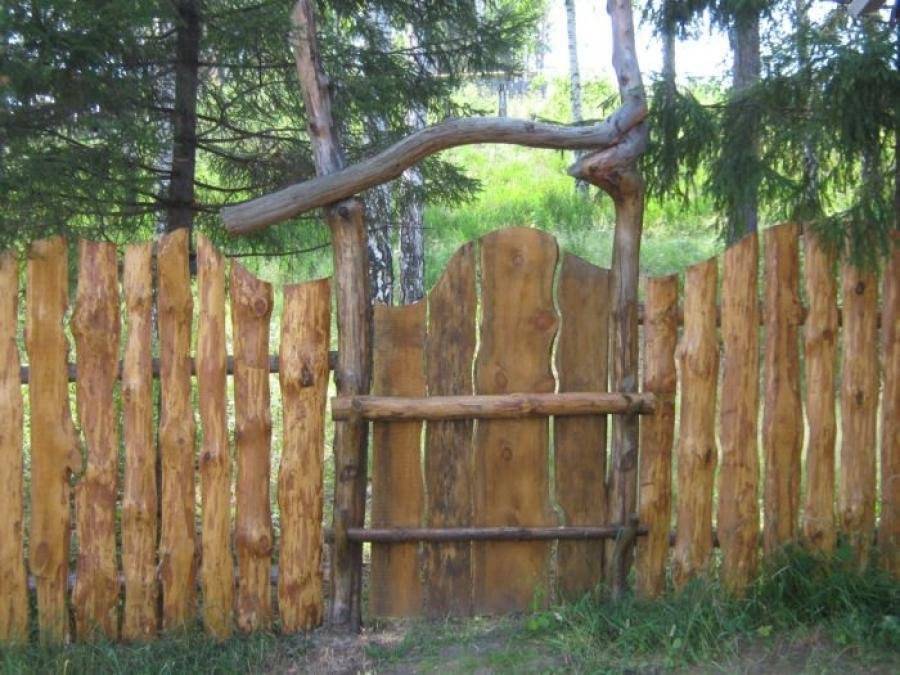 Ошкуренный и тонированный горбыль придает ограде неповторимый шарм