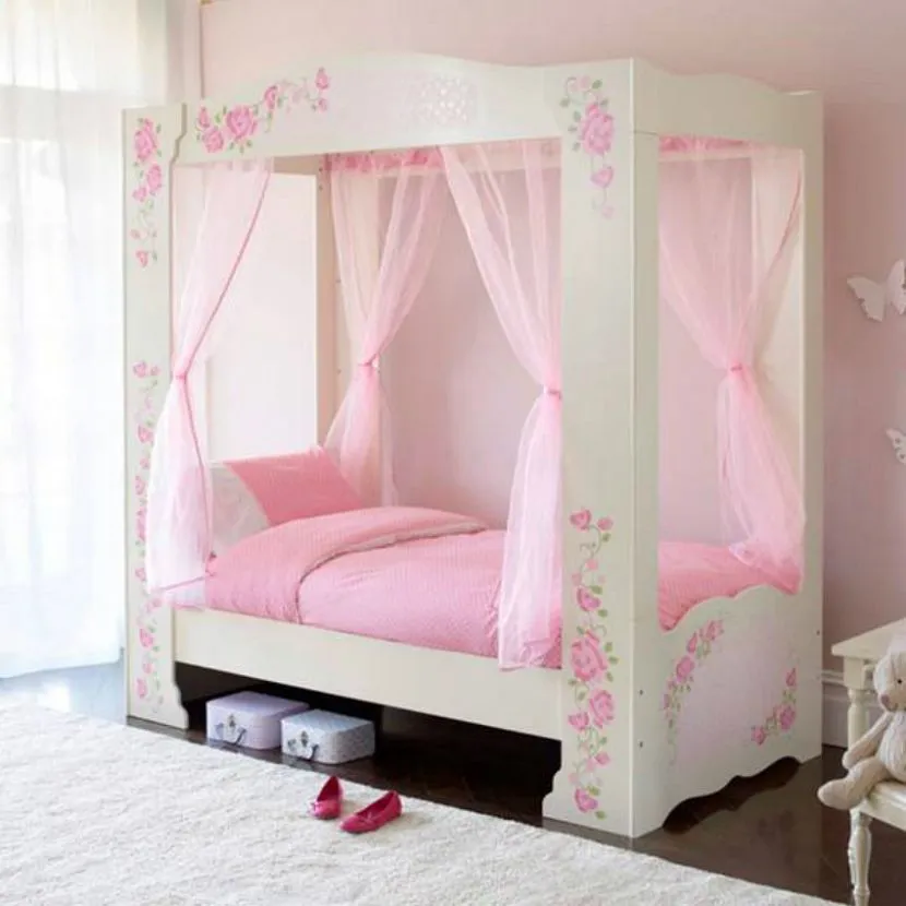 Уединиться и уберечься от яркого дневного света поможет балдахин на кровать, а ещё он станет отличным подспорьем в детских играх.