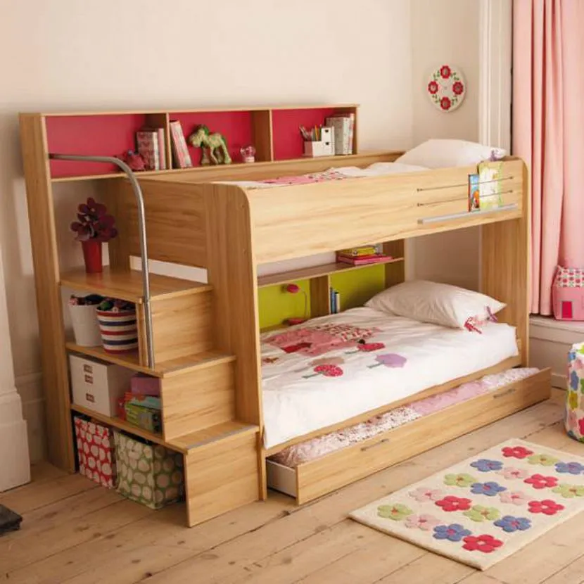 Если детская маленькая, лучше всего приобрести кровати, которые можно складывать. Спальное место раскладывается на ночь и убирается на день. Согласитесь, что это очень удобно, да и пространство остается свободным. Так как дети очень подвижны, им нужно достаточно места для игр.