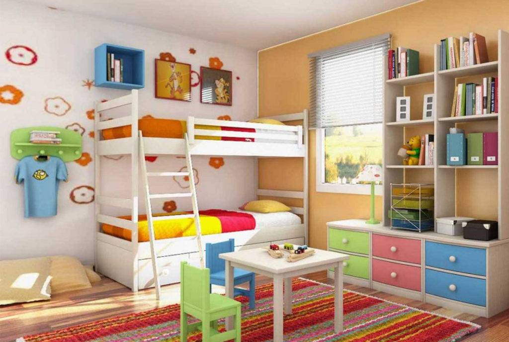 На фото интерьер комнаты для разнополых ребятишек разной возрастной группы.