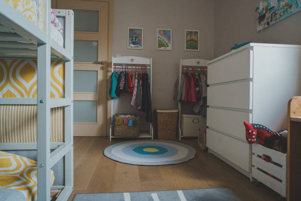 Меньше всего хлопот занимает расстановка мебели для детей-дошкольников. Они не так требовательны к своим личным границам и много времени играют вместе. И всё же, каждый ребенок должен иметь свою кроватку и шкафчик для личных вещей.