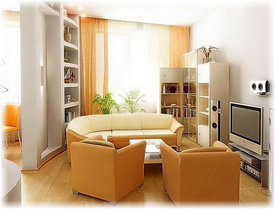 Выбор цветового оформления для гостиной зависит исключительно от вкуса каждого из нас, но, делая свой выбор, лучше отталкиваться от накопленных профессионалами советов. Так, если вы – обладатель маленькой гостиной, то лучше отдать предпочтение светлым тонам, которые зрительно способны немного расширить помещение и размыть его границы: светлая мебель на фоне светлых стен создает единое пространство. Если гостиная достаточно просторная, то можно использовать любые оттенки, даже темные и насыщенные.
