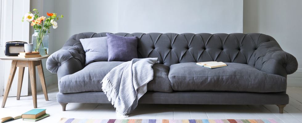 - Монохромный. Насыщенный серый диван в светло-серой комнате или спокойный синий в темно-синем.