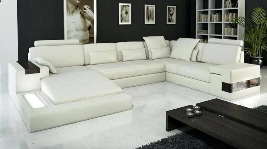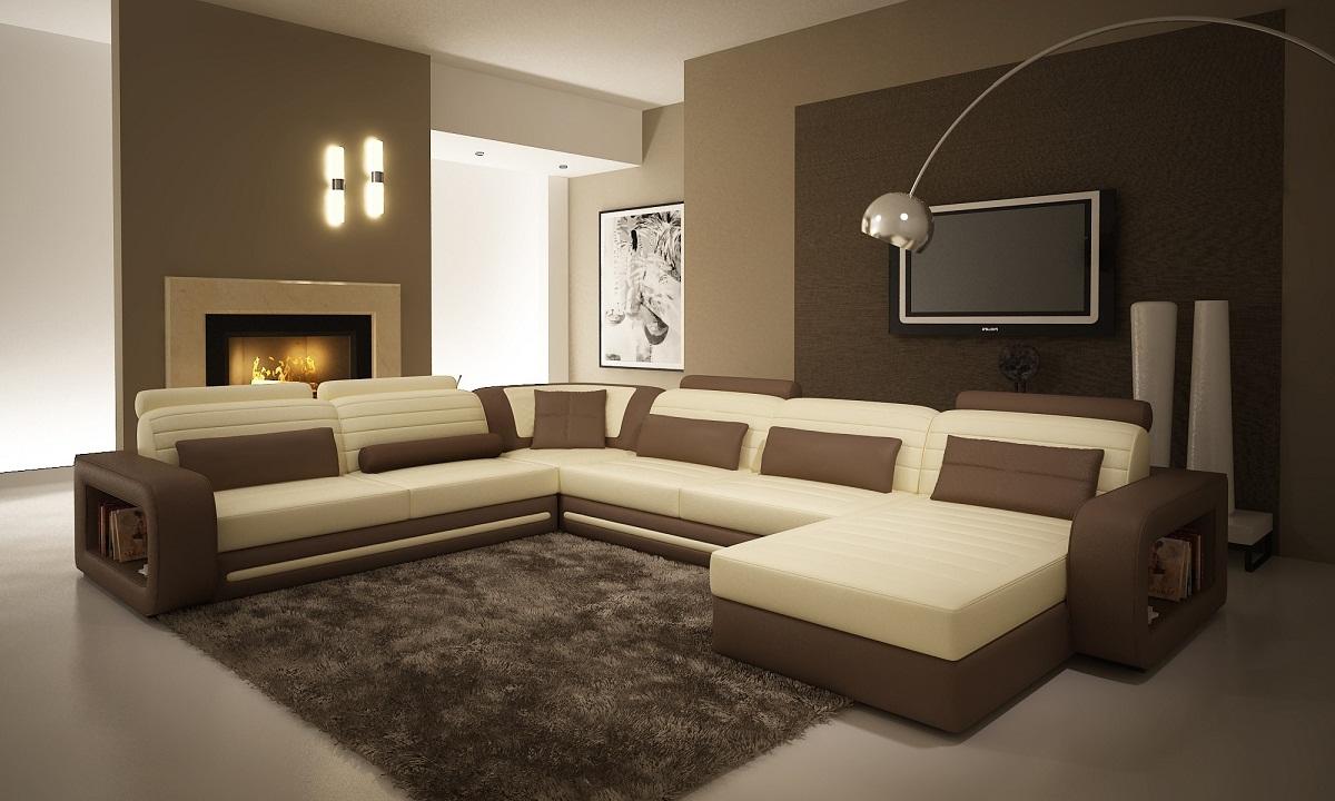 Конечно, настолько большие диваны в интерьере квартир не встречаются. Самый распространенный вариант для крупной гостиной – мягкая мебель на 6-10 посадочных мест. Этого вполне достаточно для любителей собираться компанией. Наиболее эргономичными и удобными для организации пространства являются большие П-образные диваны в гостиной, они создают максимум мест для сидения и позволяют обойтись без стульев и пуфов. Популярны и угловые модели. Кстати, в большом помещении их не обязательно размещать в углу: можно установить и островным способом (в середине комнаты) и дополнить креслом, журнальным столом.