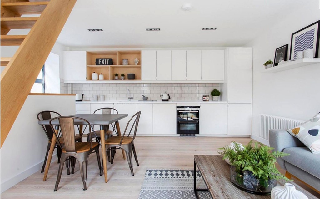 - Отказаться от верхних шкафов. Кто-то скажет, что это неудобно, а для кого-то они не несут функциональной нагрузки.