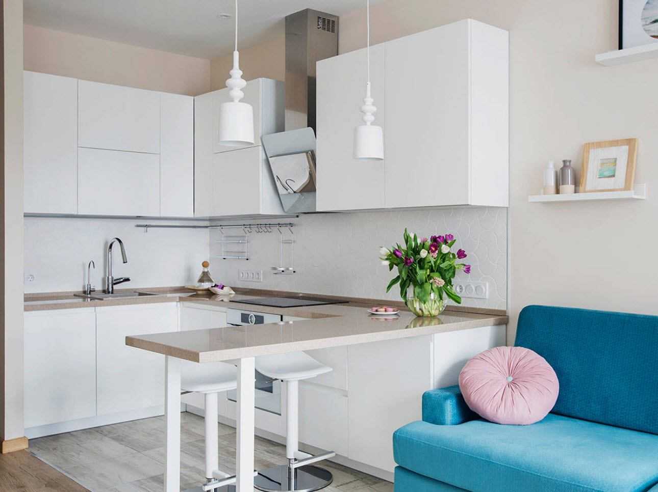 Идеи кухни гостиной в небольшой комнате с барной стойкой