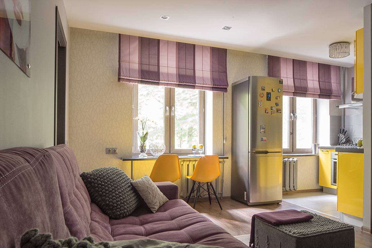 Существует несколько способов перепланировки хрущевских квартир с целью совмещения кухни и гостиной: