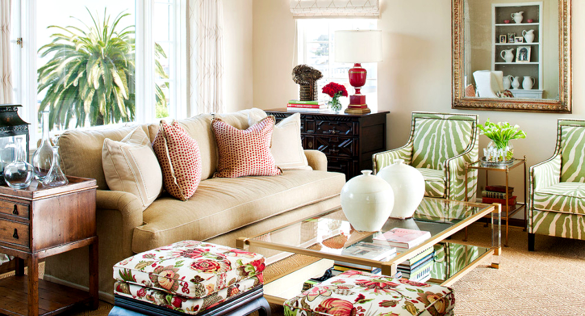 Такое сочетание, или унификация стилей достигается подбором цвета акцентных аксессуаров, фактур и цветовых тонов статичных элементов интерьера.