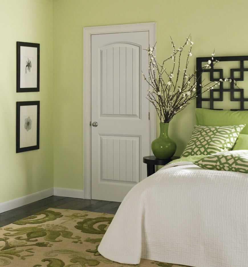 Стены лучше сделать светлыми, идеальное решение в таком случае – выбор пастельных оттенков, так как темные визуально уменьшат пространство. Если окна спальни выходят на север, цвет должен быть теплым, иначе сама спальня будет выглядеть холодной. На южную сторону лучше подбирать холодные цвета. Но если в спальне со светлыми обоями какую-то часть стены, например, возле кровати, сделать темной, то можно сыграть на контрасте, не утяжеляя комнату.