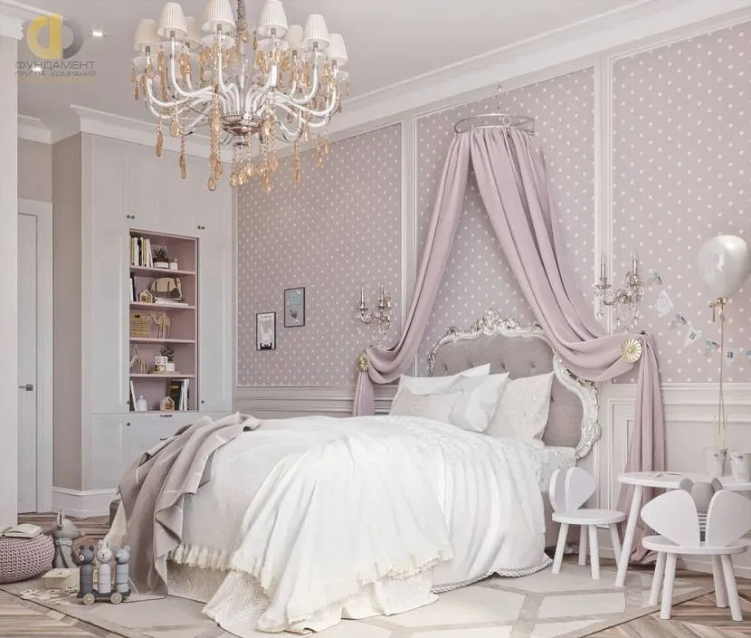 Детские комнаты подразумевают светлые цвета и их разновидности: все оттенки белого, бежевый, светло-розовый, небесно-голубой. Используют разноцветные ткани с милыми рисунками, которые сочетаются с постельным бельём ребёнка или покрытием стен. Популярны желтый, салатовый.
