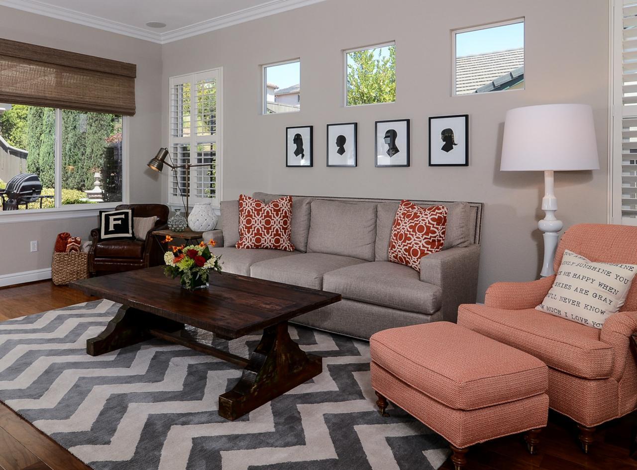 Можно обустроить комнату в разных стилях, если знать некоторые нюансы, присущие каждому. Например, модерн включает в себя использование красивых рамок, прозрачных стульев и тумбочек.