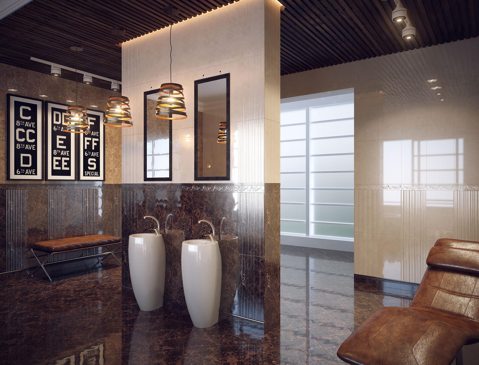 Вариант с оформлением в коричнево-бежевой гамме подойдет для разных стилей. Такая гамма уместна в эклектичном направлении, классическом, кантри и модерне. Приветствуются коричнево-бежевые краски и в дизайне, свойственном викторианской эпохе, стиле барокко.
