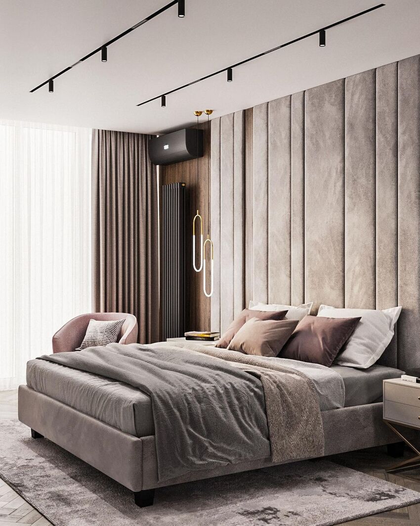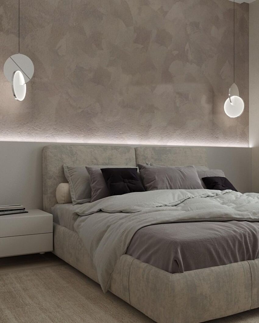 Организация интерьера модерн в спальне с бежевым исполнениемИсточник yandex.kz