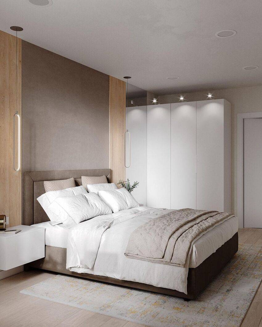 Бежевая спальня с интерьерным направлением модернИсточник uiut.boltai.com