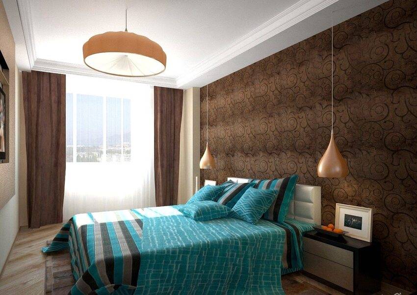 В южные спальни, напротив, рекомендуется выбирать плотные шторы коричневых оттенков.