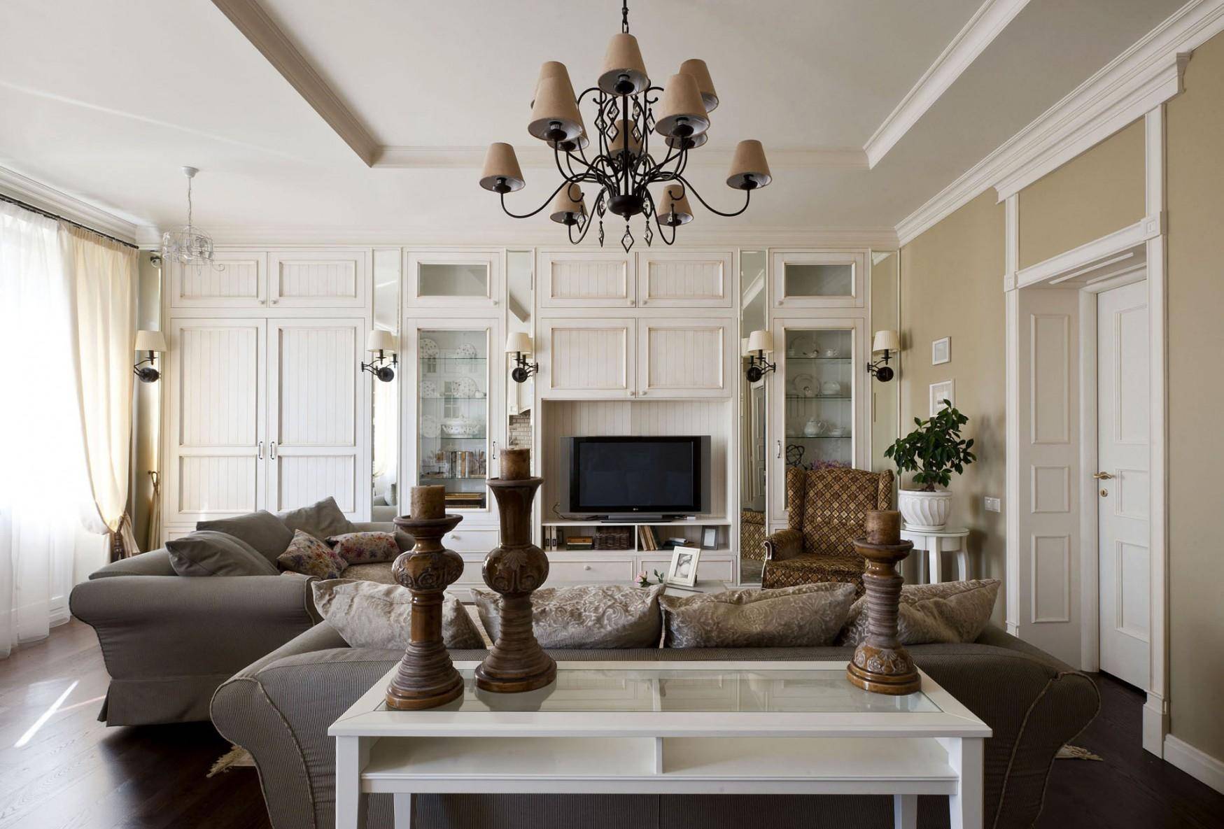 Характеризуется наличием плавных линий и такой же маленькой мебелью, наличием переплетов в определенных элементах. Гармонично будет смотреться стеклянная белая тумбочка, журнальный столик и небольшая прикроватная тумбочка. Придадут стиля старинные картины, которые украсят помещение и наполнят комнату таинственностью, где главными элементами служит беж и золото.