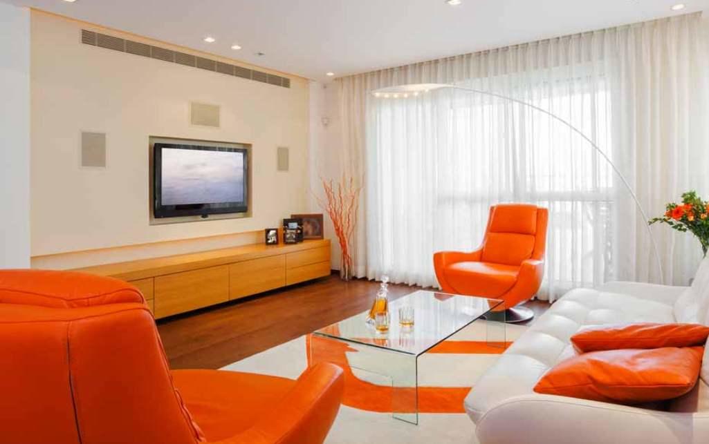 В гостиной постоянно не хватает солнца и света, а окна выходят во двор или на север? Обрати внимание на солнечные желтые оттенки, тем более ванильный, банановый и горчичный сейчас в тренде. А если ты предпочитаешь более редкие и смелые решения – посмотри на насыщенную апельсиново-оранжевую палитру