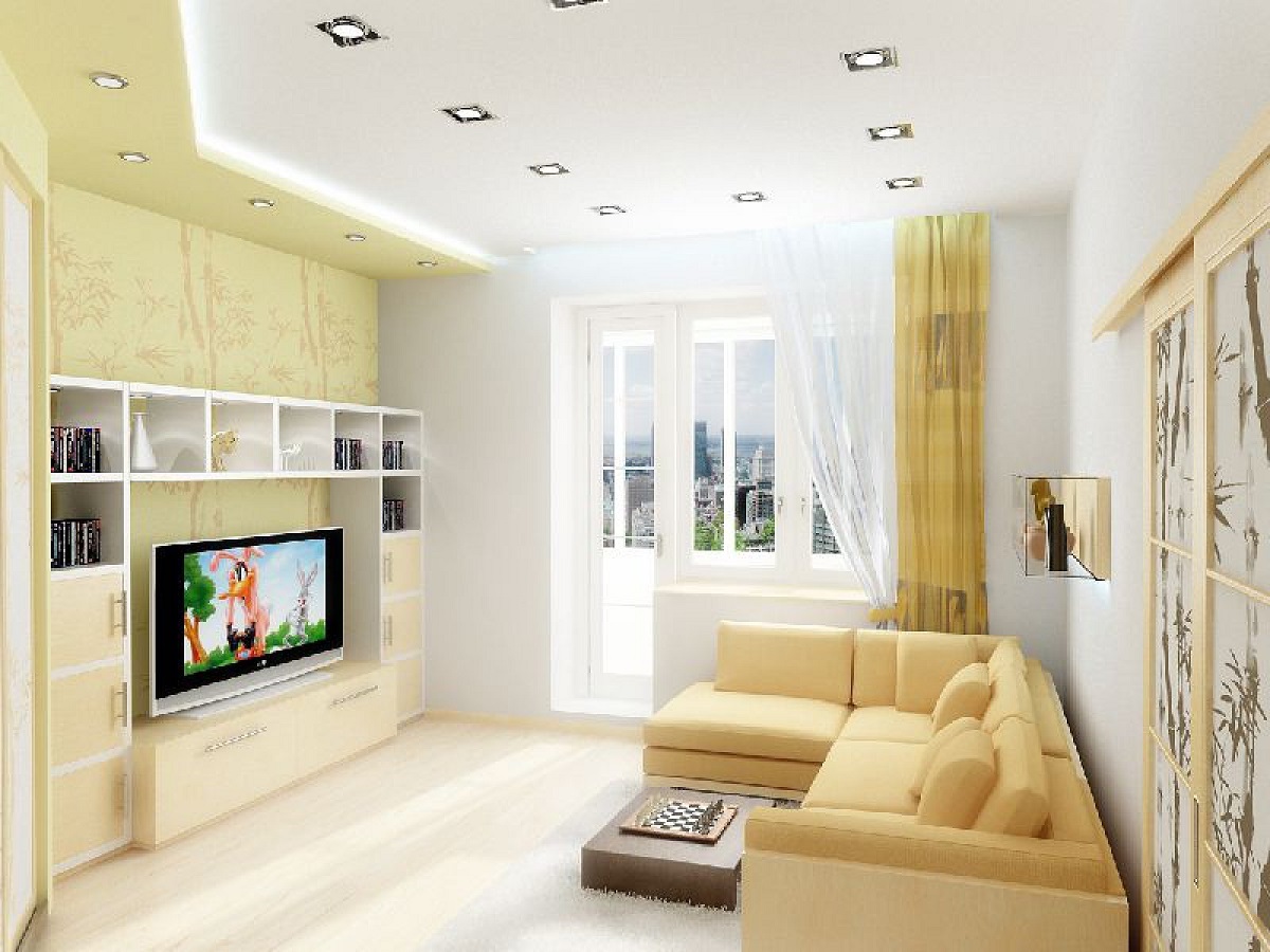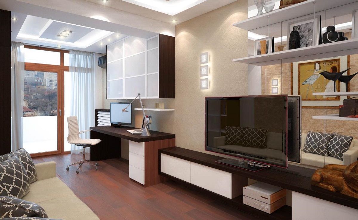 - зонирование пространства: отделить сектор отдыха, с диваном или мягким уголком и сектор для приема гостей, с журнальным столиком, стульями и т. п;
