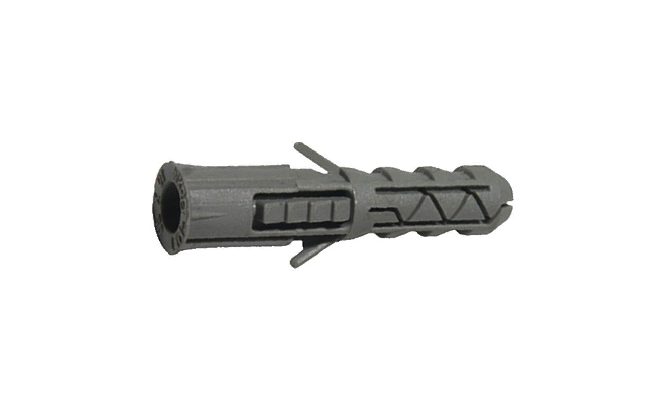 - Пластиковый дюбель. Имеет пластиковый корпус с буром на конце. Такой элемент вкручивается без надобности сверления, после чего в пластиковую коробку вкручивается металлический винт, который и закрепляет нужные элементы